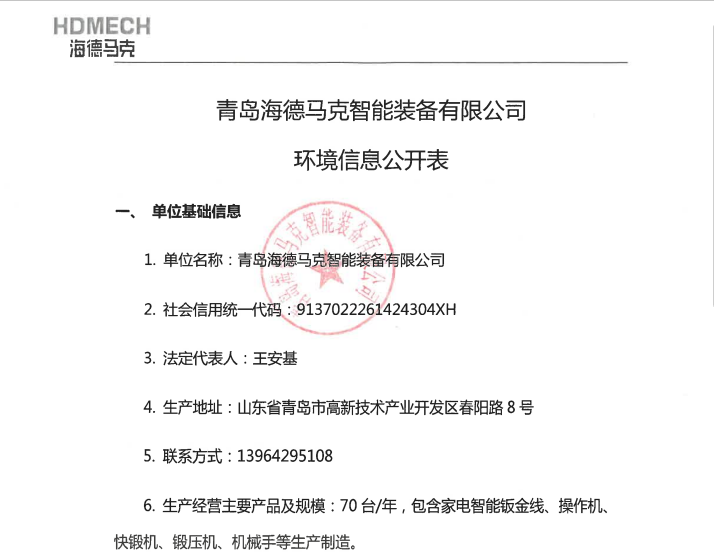 青島海德馬克智能裝備有限公司環(huán)境信息公開(kāi)表查看詳情